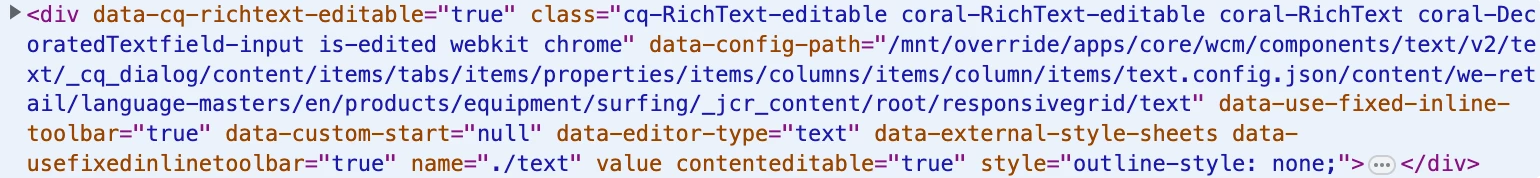We can see the successful one is loading `class="cq-RichText-editable coral-RichText-editable coral-RichText coral-DecoratedTextfield-input is-edited webkit chrome"`, another one is loading `class="coral-Form-field"`. There are other css properties fail to load such as the menu, I consider they belong to the same issue.