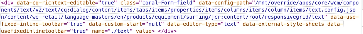 I take the following page as my test one by inserting an OOTB Text component into a Parsys: