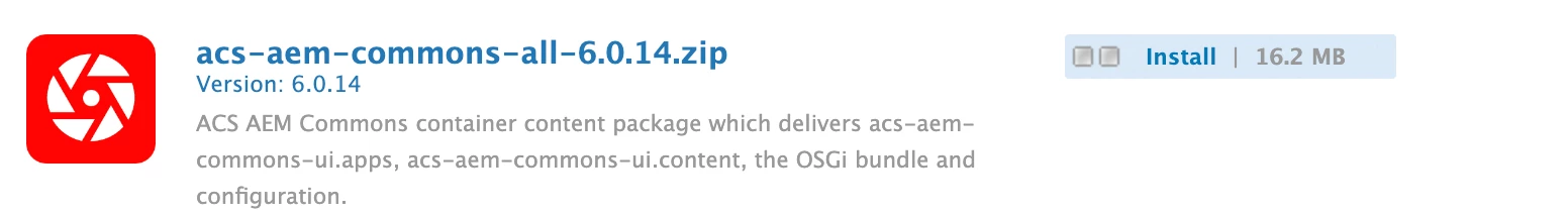 curl -u admin:admin -F cmd=install http://localhost:4502/crx/packmgr/service/.json/etc/packages/adobe/consulting/acs-aem-commons-all-6.0.14.zip