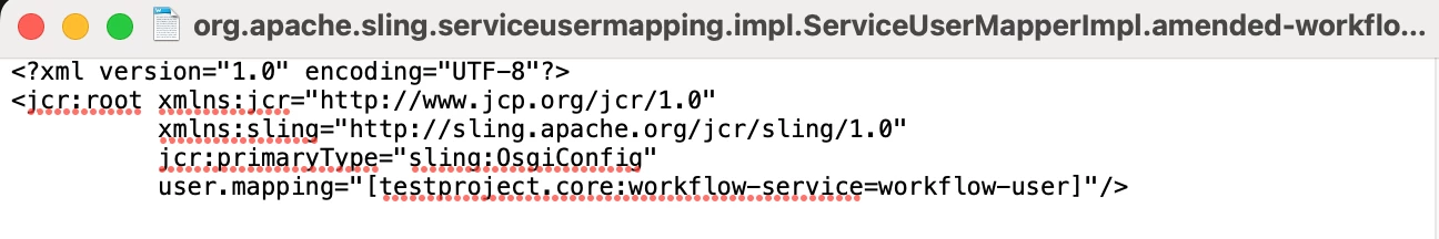 The provided service user id 'workflow-user' is not a known JCR system user id and therefore not allowed in the Sling Service User Mapper.