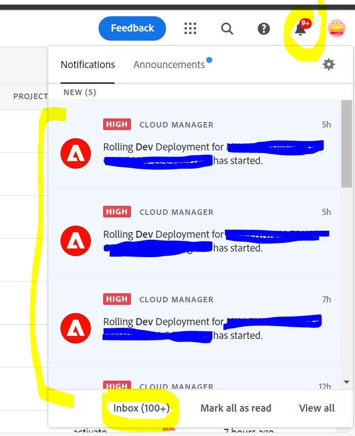 when we run the workflow each process step is shown in AEM inbox notification popover . but when we deploy same code in AEM cloud. we are not getting any workflow related notification in AEM inbox notification popover. it's only shows inbox count in the bottom as show in the below. is there any why we can get inbox notification in this bell icon notification popover programmatically? similar way how the non-cloud version shows ?