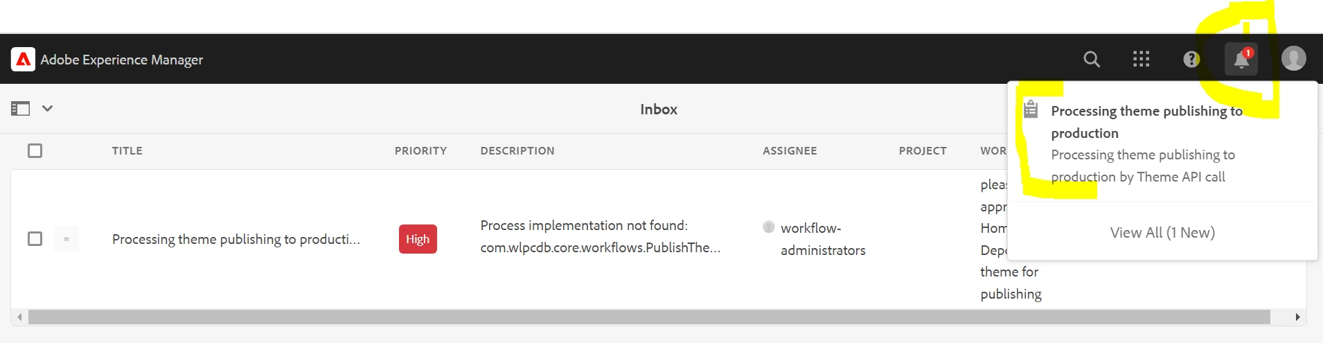 AEM- cloud - where we are not seeing any workflow related notification except inbox link in the bottom