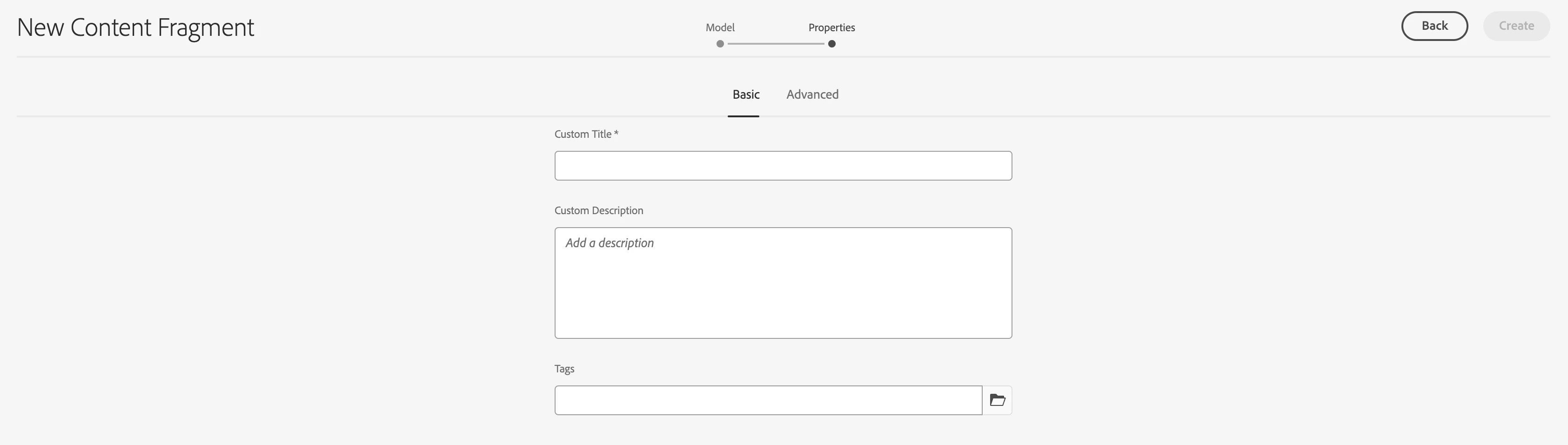 How can we change the field labels like "Title" and "Description" to custom values, while creating content fragment, you can see that, in the properties tab, it asks for "Title*" and "Description" , I need to change the "Title*" fieldLabel to some custom values.