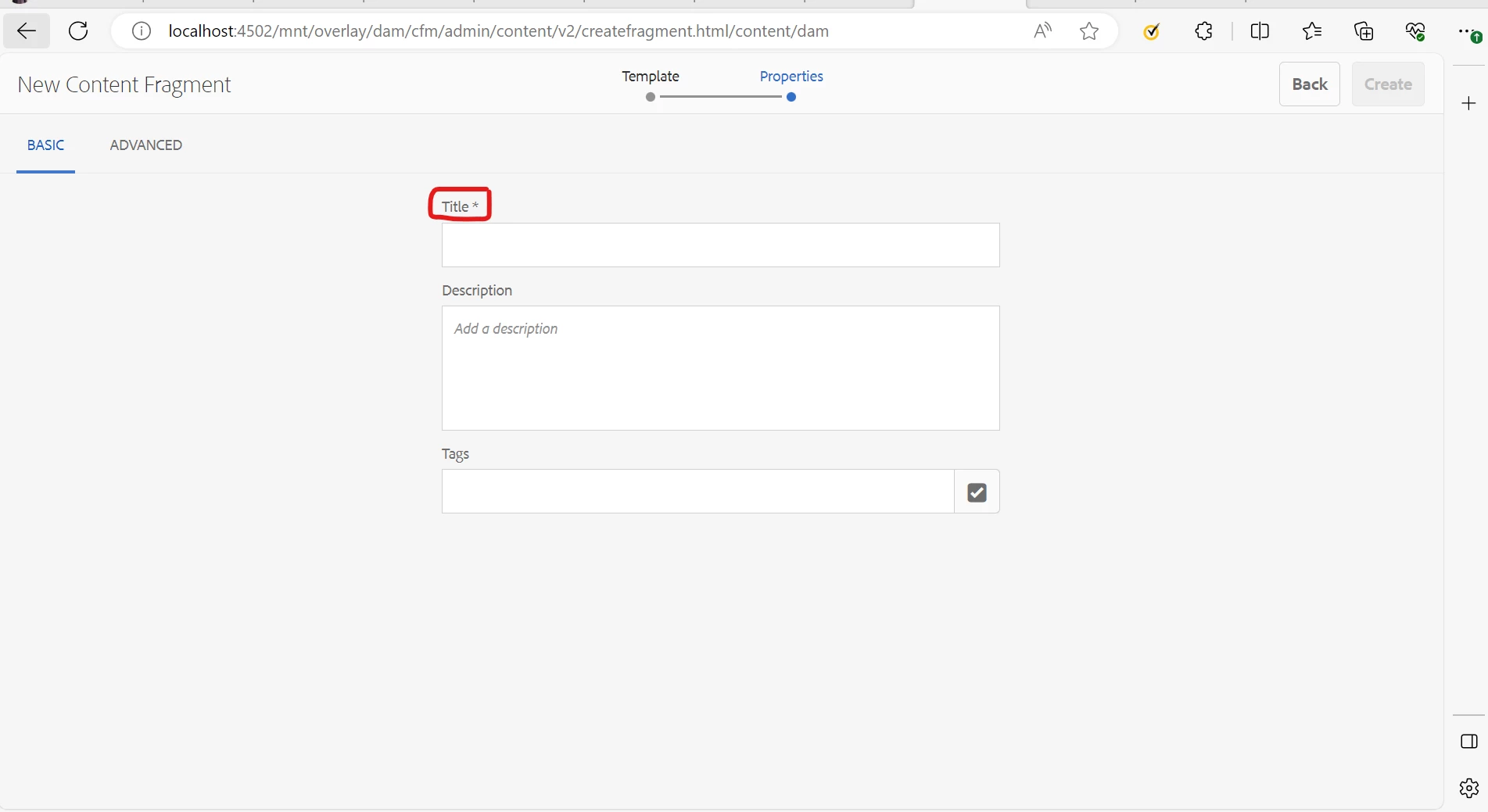 To change the field label while creating content fragments