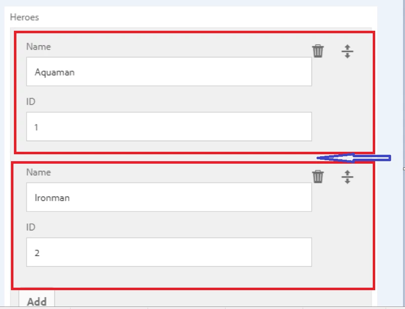 I have a requirement as per which there must be ADD button after each Item(in Red).How can this be achieved?