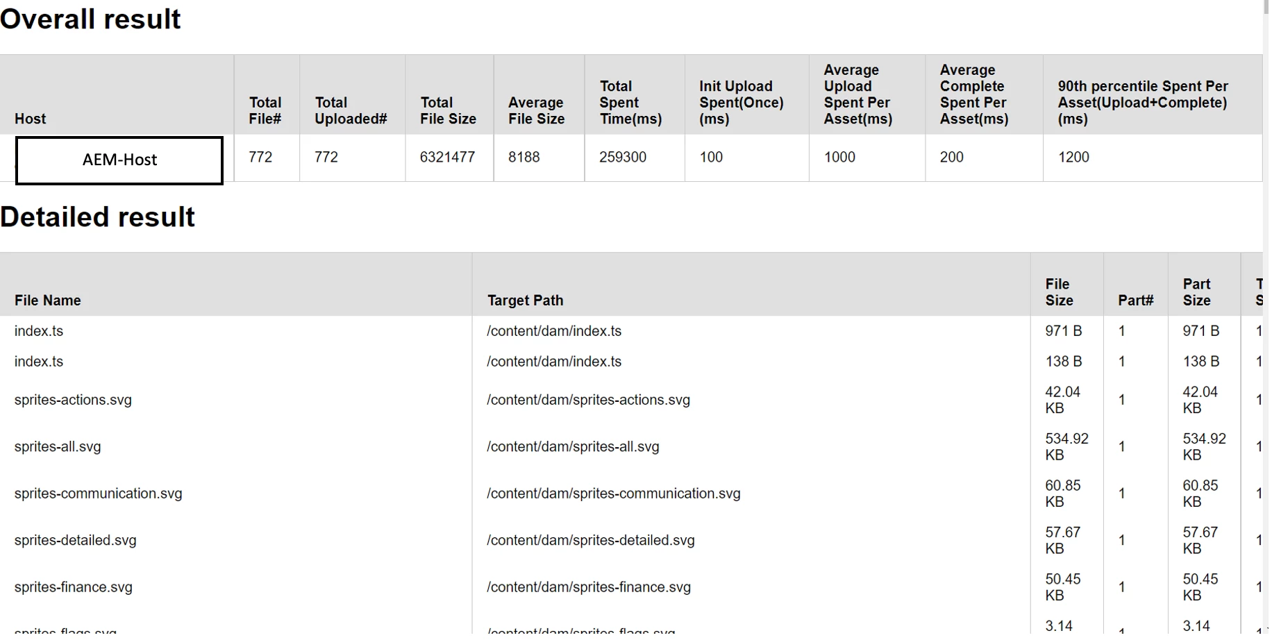 As a result, a html file will be generated and we can see the file upload status.