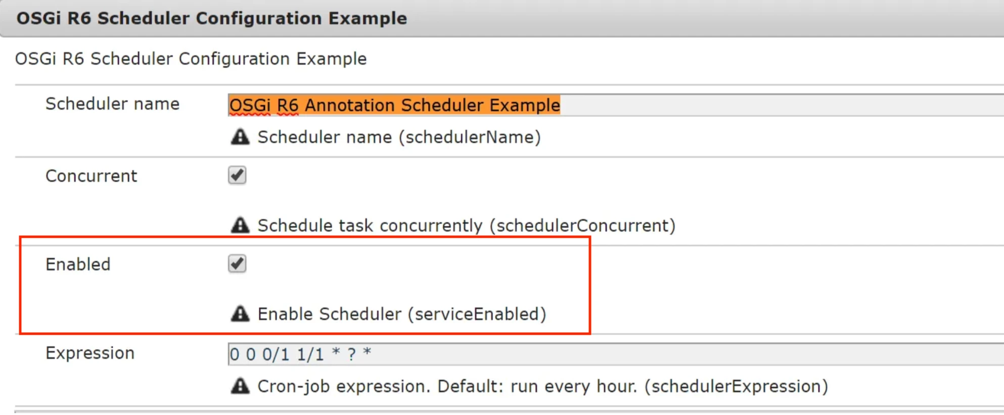 @AttributeDefinition(name = "Cron-job expression")