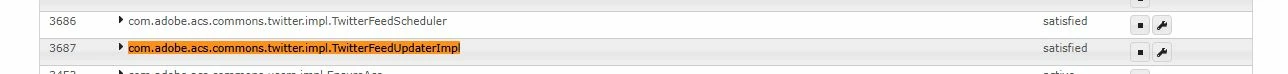 - Check if com.adobe.acs.commons.twitter.impl.TwitterFeedScheduler and com.adobe.acs.commons.twitter.impl.TwitterFeedUpdaterImpl . This is in satisfied state
