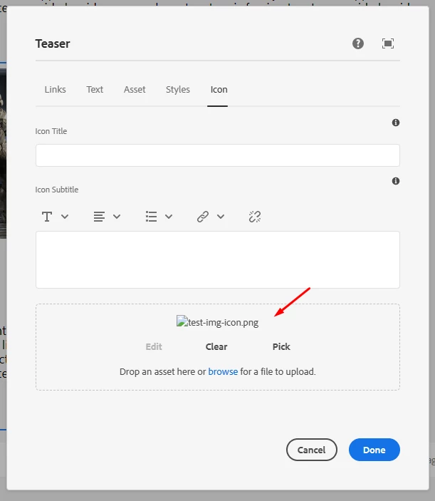 Hello, I've been trying to upload two images to a Teaser component, my approach was to extend the Teaser and override the cq_dialog to add a new tab with 2 text properties and 1 image.