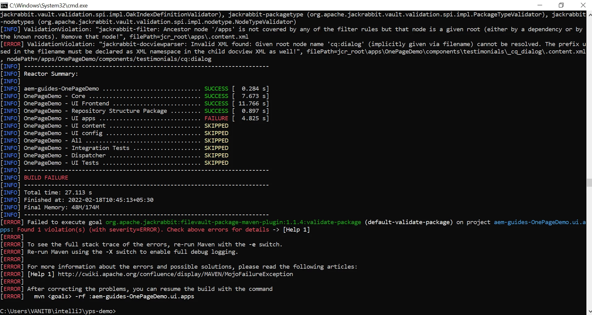 I am trying to build a project, before it was working fine. I have created new component and trying to run the command mvn clean -PautoInstallPackage when I do that, I'm getting this violation error. Can anyone help me with this ? Thanks in advance.