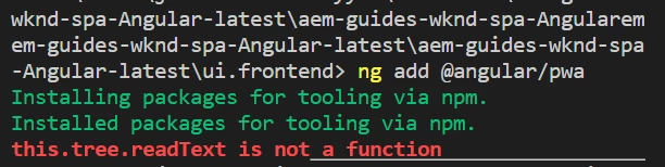 "ng add @21257/pwa" by navigating to ui.frontend, getting below error.