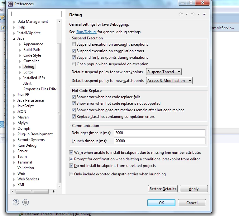 When i try to connect to the server in the debug mode from eclipse, it throws following error: