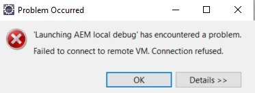 could not establish debug connection to localhost : 30303