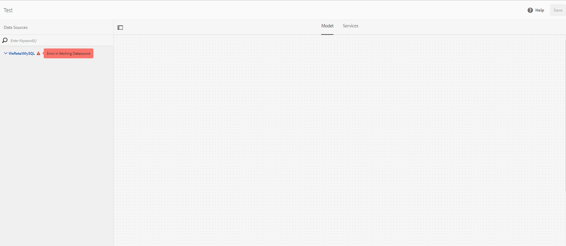 But when I am trying to create form data model from the DataBase as the datasource, I am getting this: