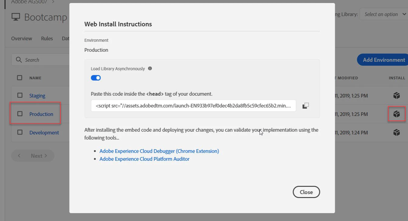 unable to integrate AEM with Launch using Adobe I/O having static templates