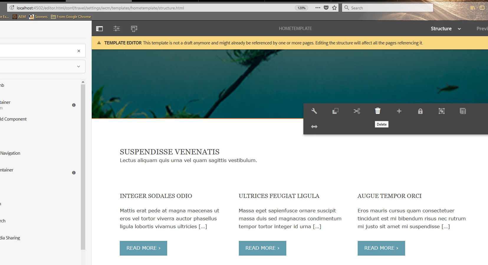 We are using editable templates, after adding the components to the editable template I noticed that there is no trash icon in the toolbar so we are unable to remove the component from Template. Is it expected behavior with the editable templates because when I use the same component on static templates I am seeing trash icon and I am able to remove the component.