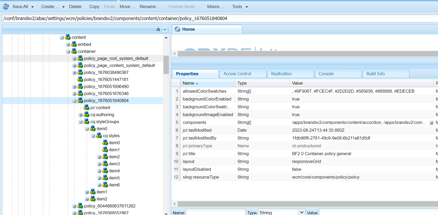 Unable to see style system option on first container component