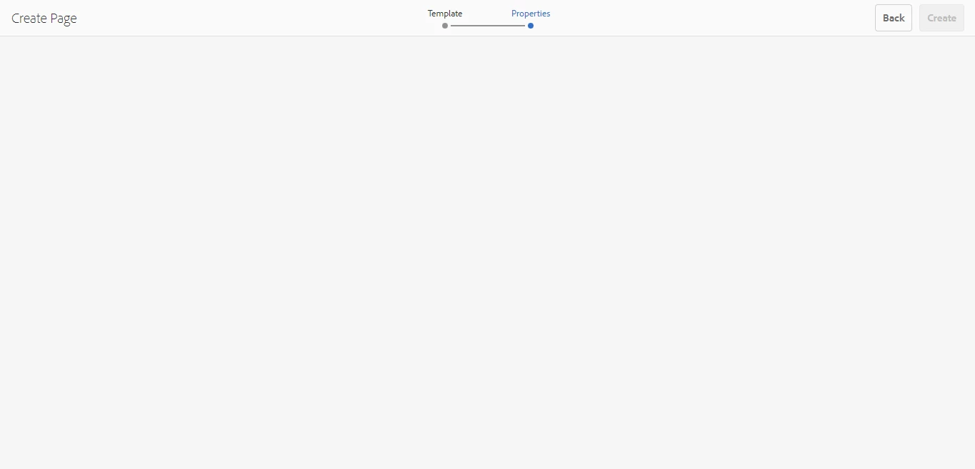 I tried to create new page, then I select a template, the Properties page open whit empty content and unable to move to the next?