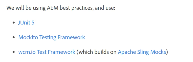 I want to add unit test in my project since I use AEM cloud manager pipeline to trigger build. During which there is a step to check unit test. I'm not sure which framework would be good to go ahead with. [MOCKITO, SPOCK, JUNIT, ProsperSpec, anything else that is latest, etc]