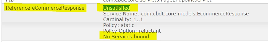 I have a Json response from SAP eCommerce. And for that I created a POJO class to map the keys and its values. Now when I'm referencing it into my servlet, I'm getting Unsatisfied (reference) error in system/console/components for that particular Reference.