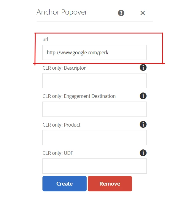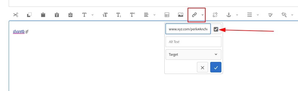 If we provide any URL which has a tag value (for example : www.xyz,com/perk#Anchor) , and save the dialog, and again if I reopen the dialog, the URL value is not saved in the field.