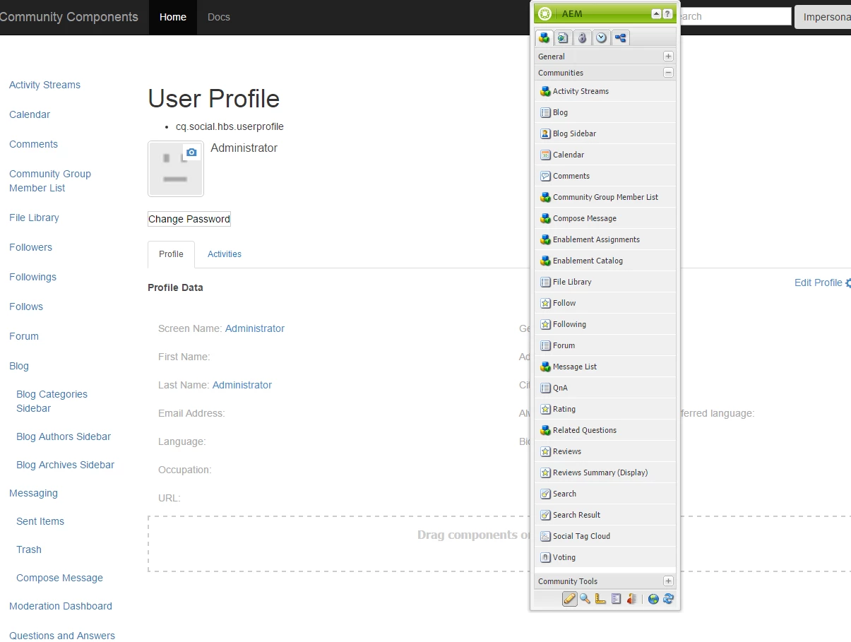 But the user profile component does not work as a singular component that is dragged and dropped onto a page.