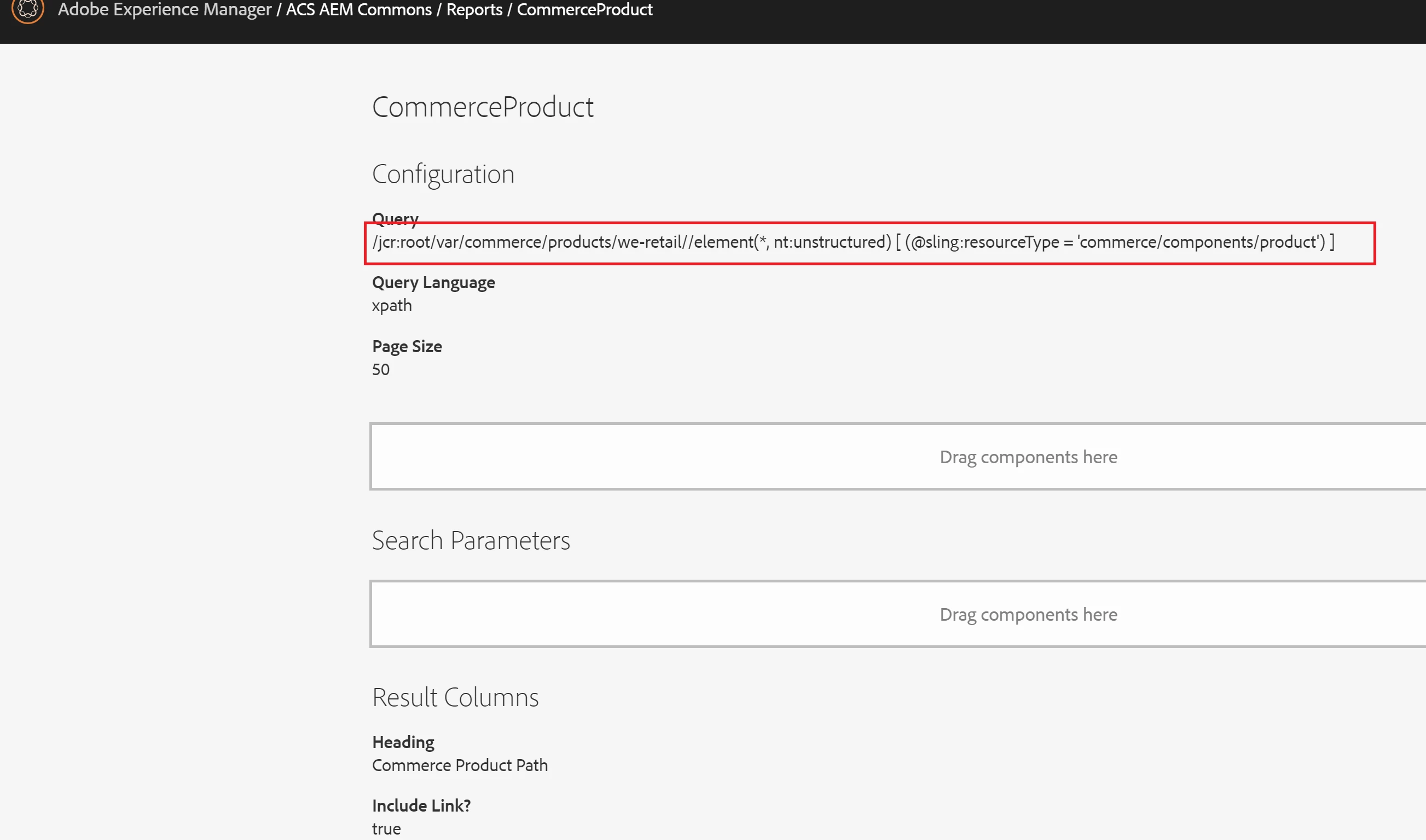 I can run a report with no query parameters and get a significant amount of data that shows every jcr attribute.