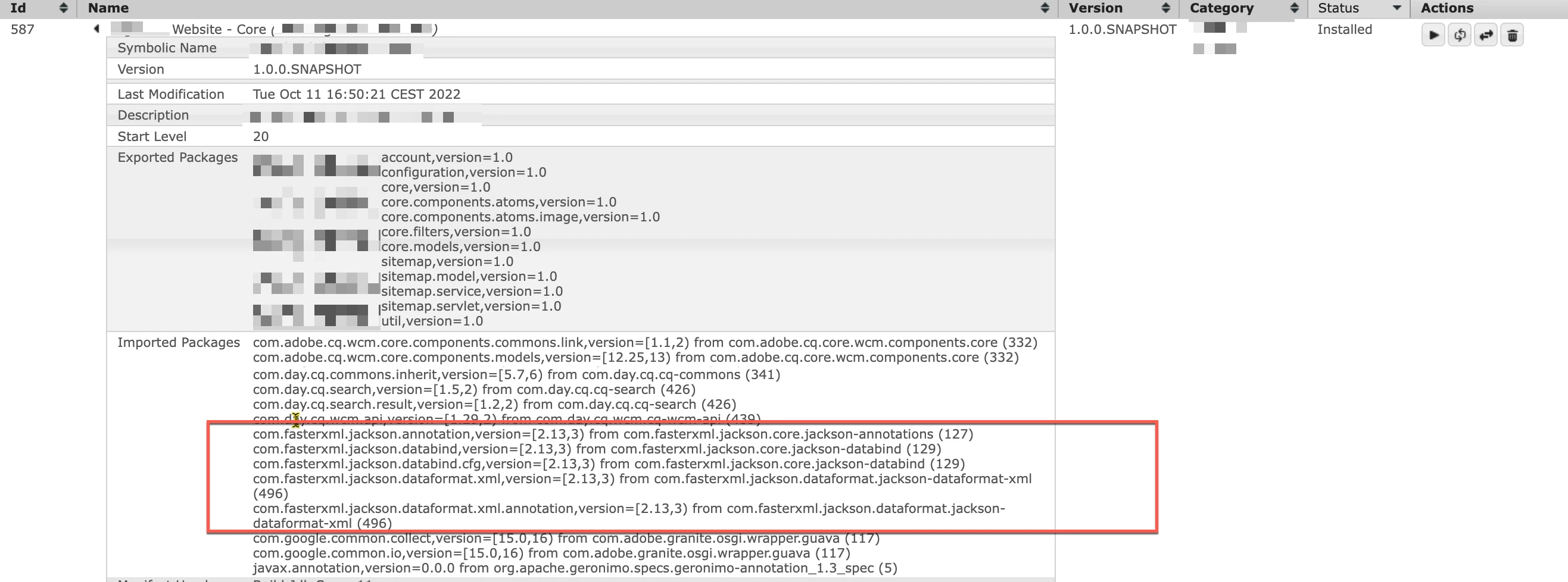 Bundle is present in platform, installed from launchpad:resources/install/20/jackson-dataformat-xml-2.13.0.jar in active state