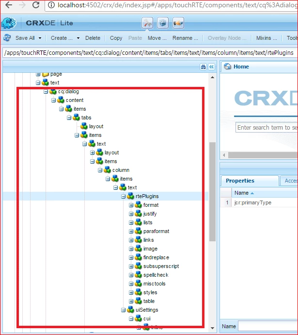 This dialog works fine in we use it in touch UI as it is. But if we change the dialog to cq:dialog and follow the standard of creating the dialog according to touch UI, the dialog does not show the plugins i added under rtePlugins. InPlaceEditing is showing few icons (do not want to use this mode), but the dialog or the full screen dialog does not show the icons as configured in the rtePlugins. I tried rtePlugins node under inplaceediting node and under the node that has resourceType as cq/gui/components/authoring/dialog/richtext.