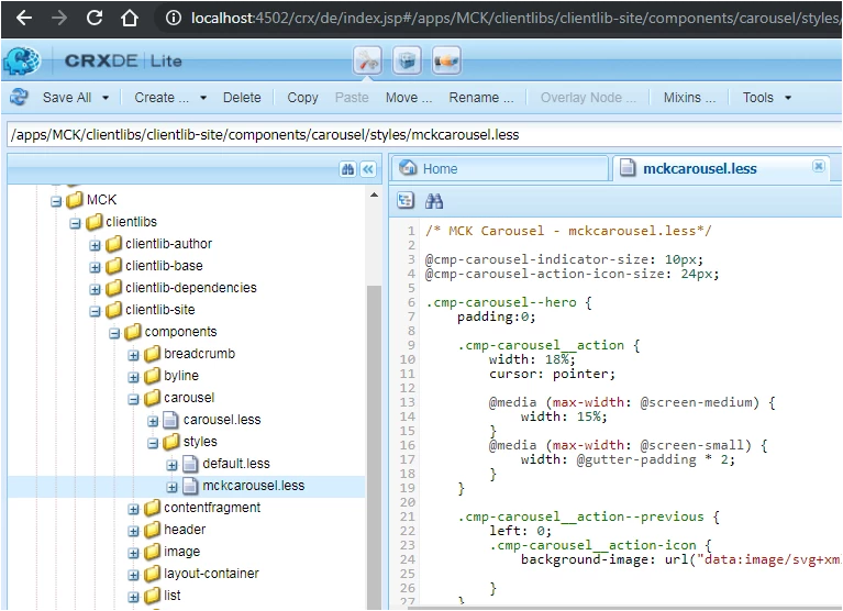For this I have added below in my mckcarousel.less file , as shown below.