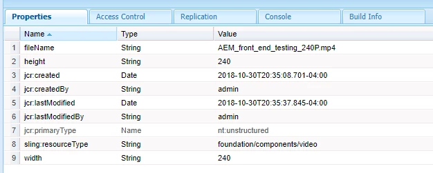 Here is the properties of my video in Author CRXDE Lite.