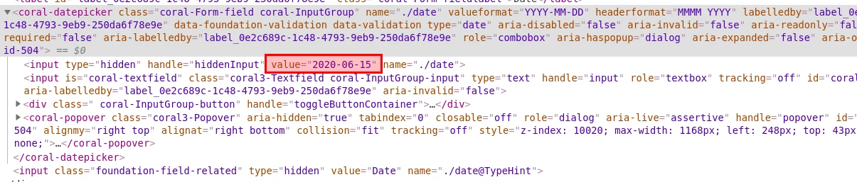 I have used granite/ui/components/coral/foundation/form/datepicker.