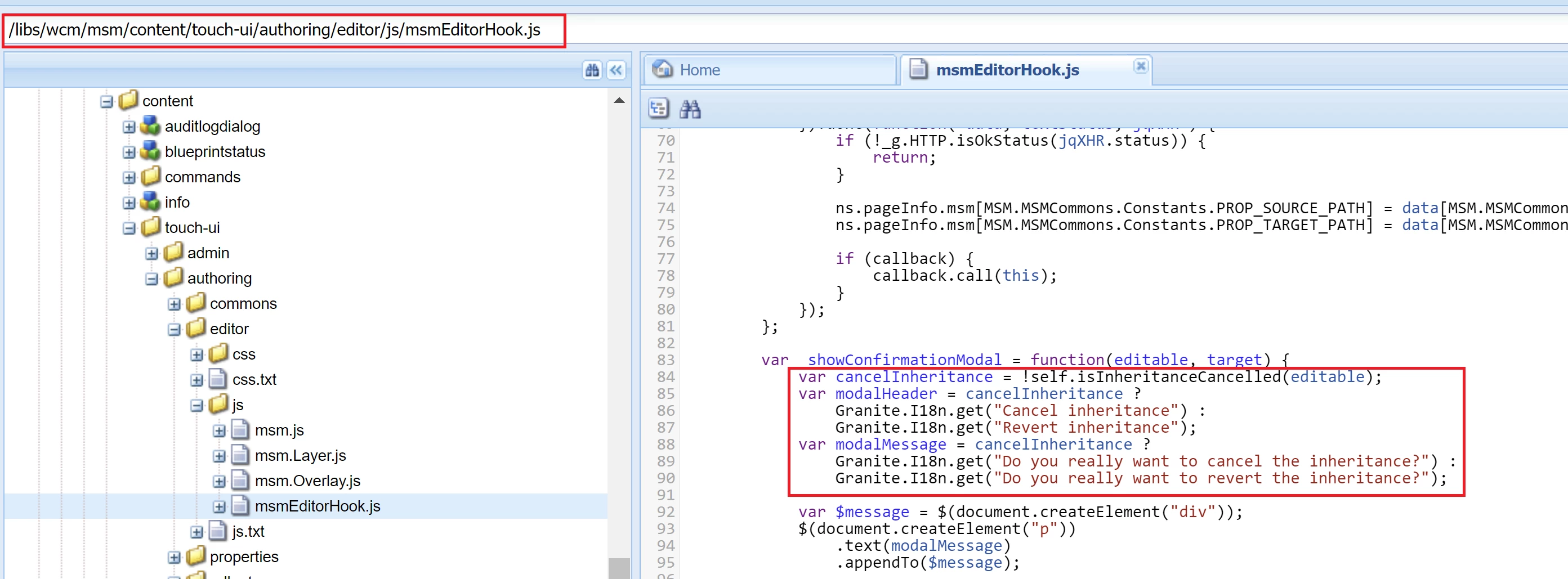 We have one requirement to customise the message, that we are getting while canceling the inheritance on a live copy page.