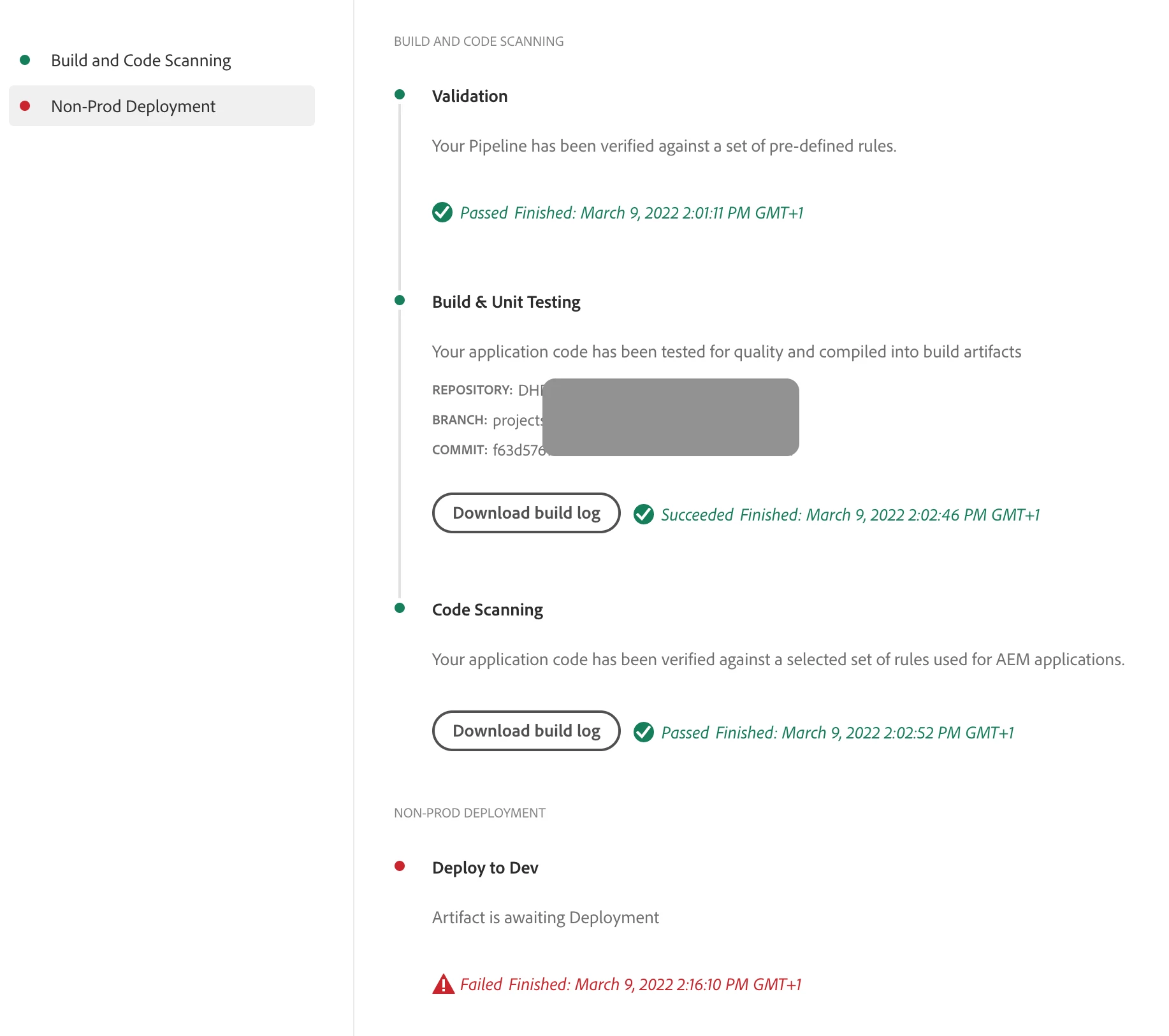 The issue is that the pipeline fails but there seem to be no way to understand what's causing it. Here's the screenshot of the pipeline after a try:
