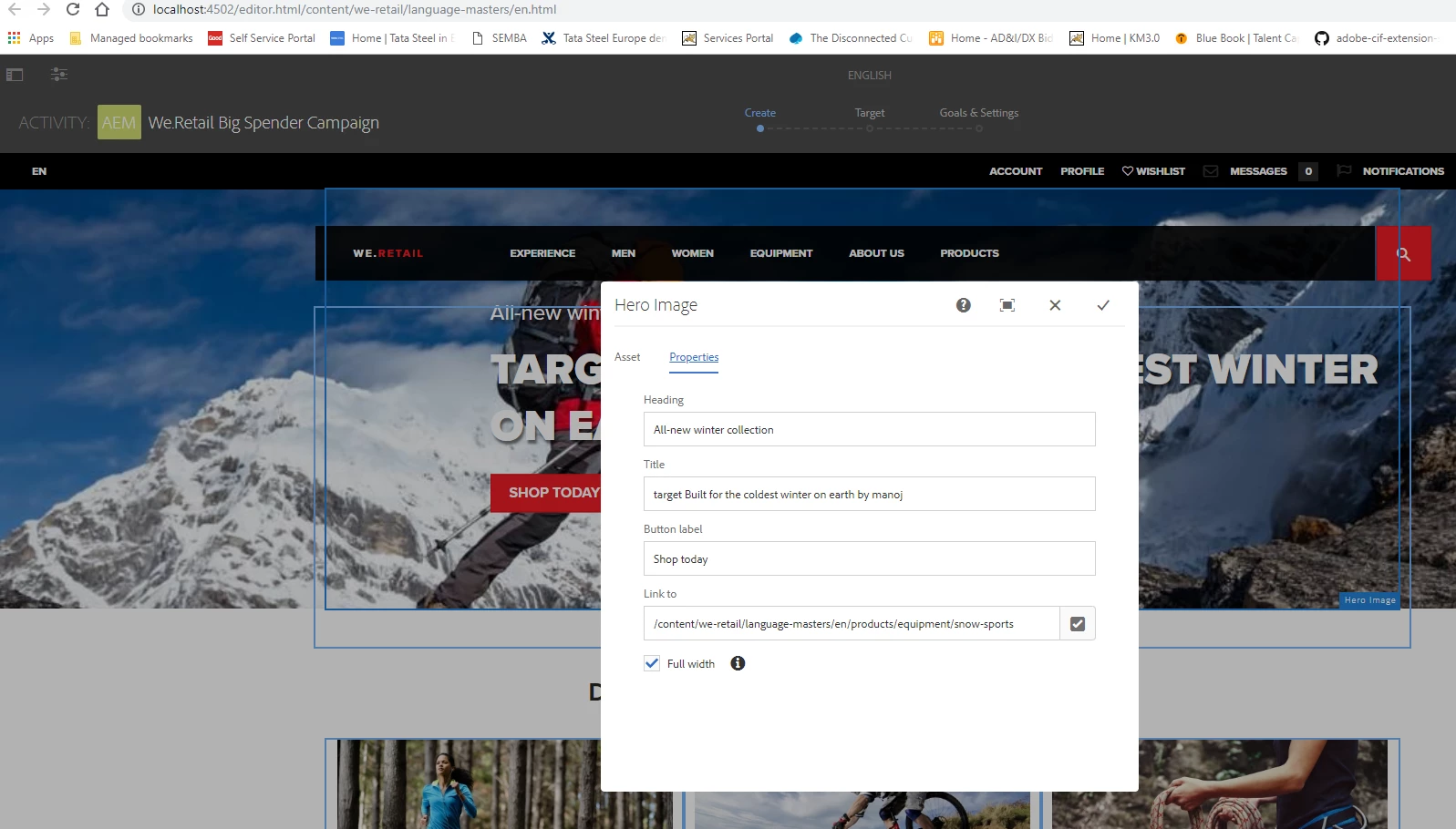 WeRetail changing the hero message