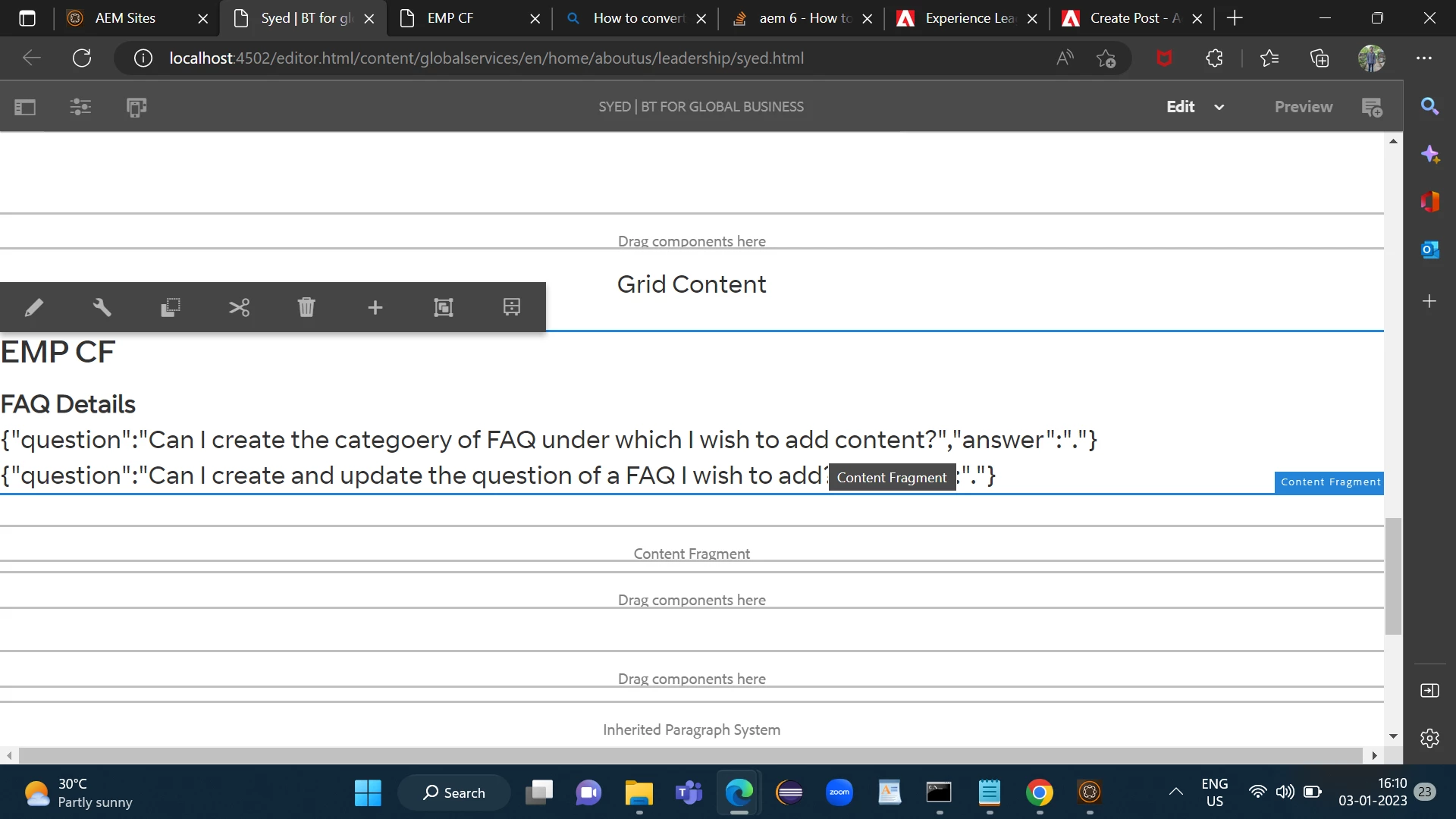 Can you please share the HTML code snippet of the component which you are using to fetch the content fragment data?