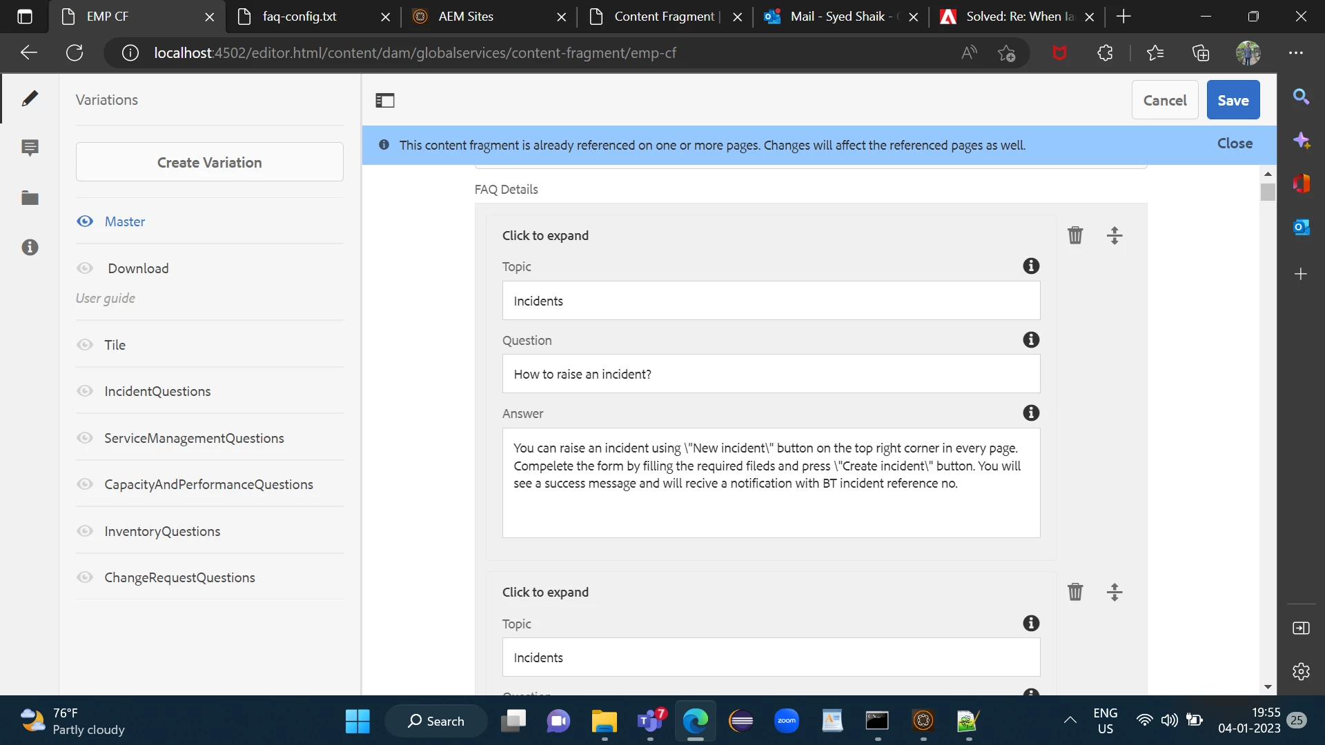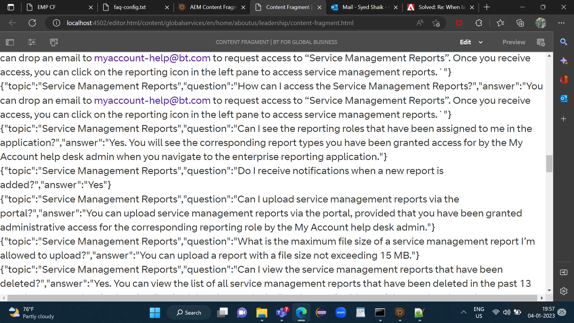 When Iam Creating FAQ Feature in CF Component It appearing in json format like below