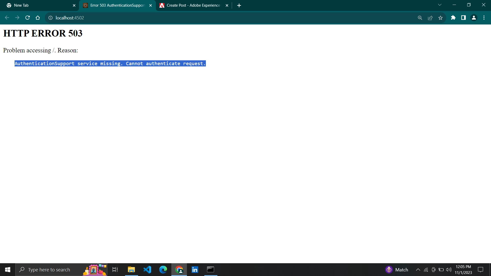 Whenever I am starting my AEM instance it is showing me the "AuthenticationSupport service missing. Cannot authenticate request."