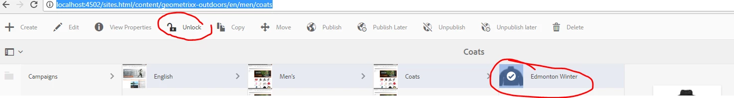 Where can i find which author has locked the page in Touch UI - AEM6.2