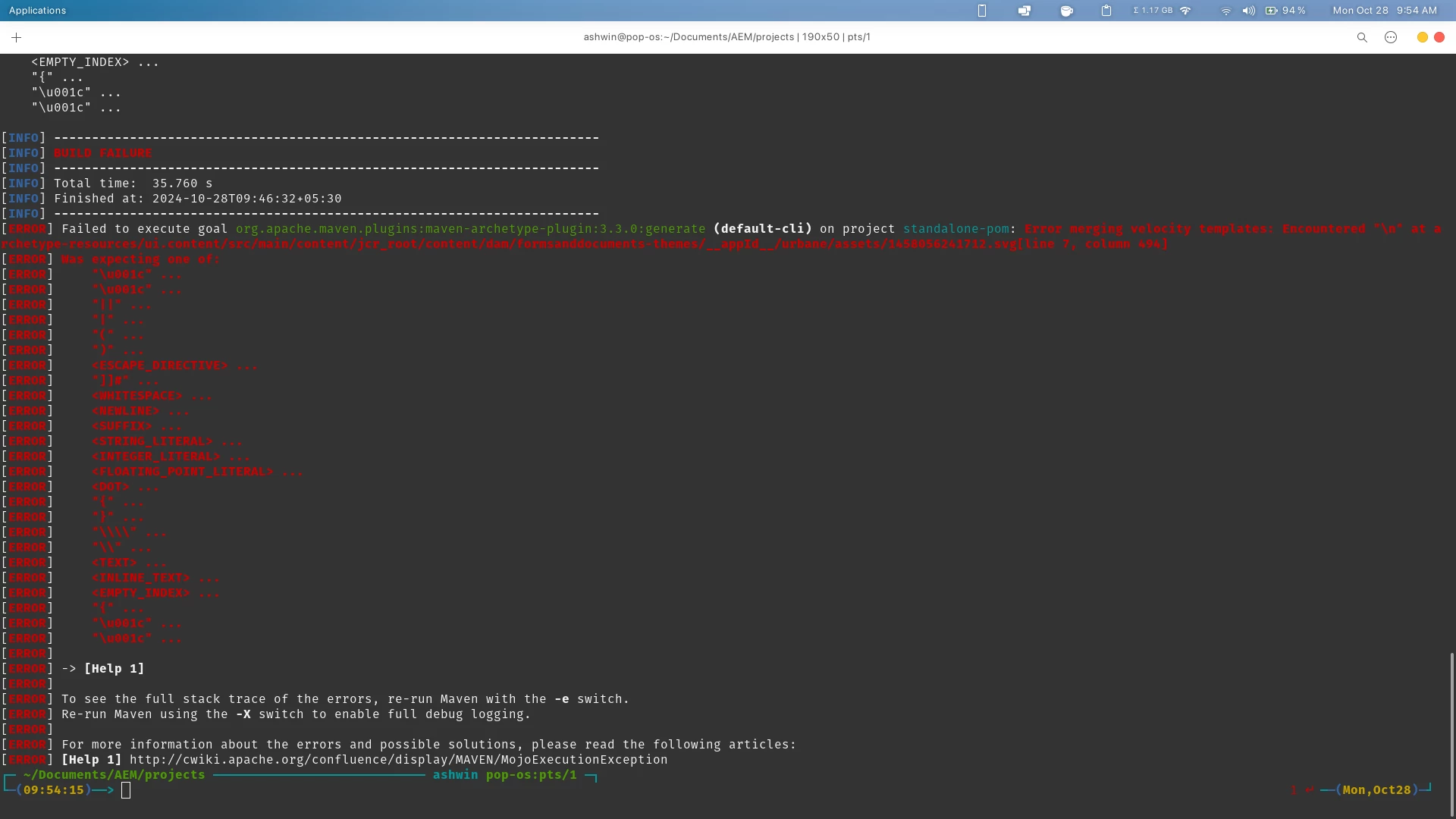 [ERROR] Failed to execute goal org.apache.maven.plugins:maven-archetype-plugin:3.3.0:generate (default-cli) on project standalone-pom: Error merging velocity templates: Encountered "<EOF>" at archetype-resources/ui.content/src/main/content/jcr_root/content/dam/__appId__/_jcr_content/folderThumbnail[line 113, column 926]