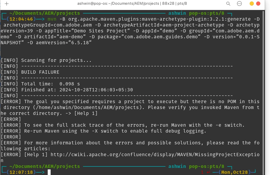 mvn archetype:generate -DgroupId=com.ashwin -DartifactId=sample-project -DarchetypeGroupId=com.adobe.aem -DarchetypeArtifactId=aem-project-archetype -DarchetypeVersion=24 -Dversion=1.0-SNAPSHOT