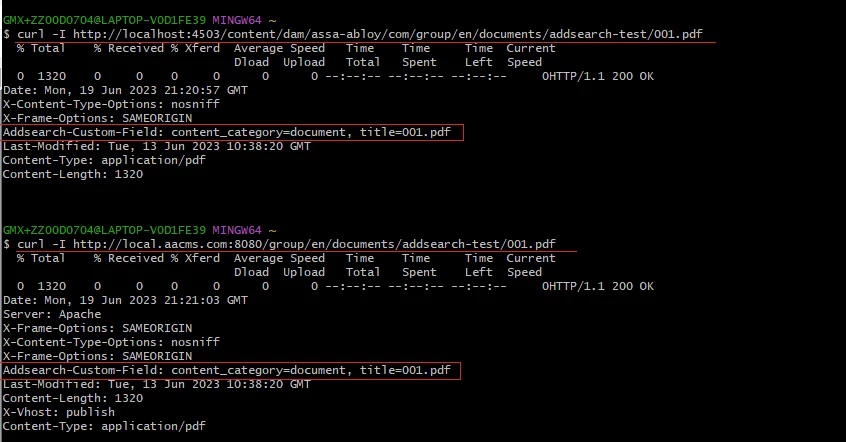 | Current/Experienced Behavior: | HTTP Headers are not present in the response. Filter is triggered and solution works fine on the Local SDK (screenshot attached), displaying proper values both on publish and dispatcher. Header is removed when redirecting asset request towards binary bucket. |