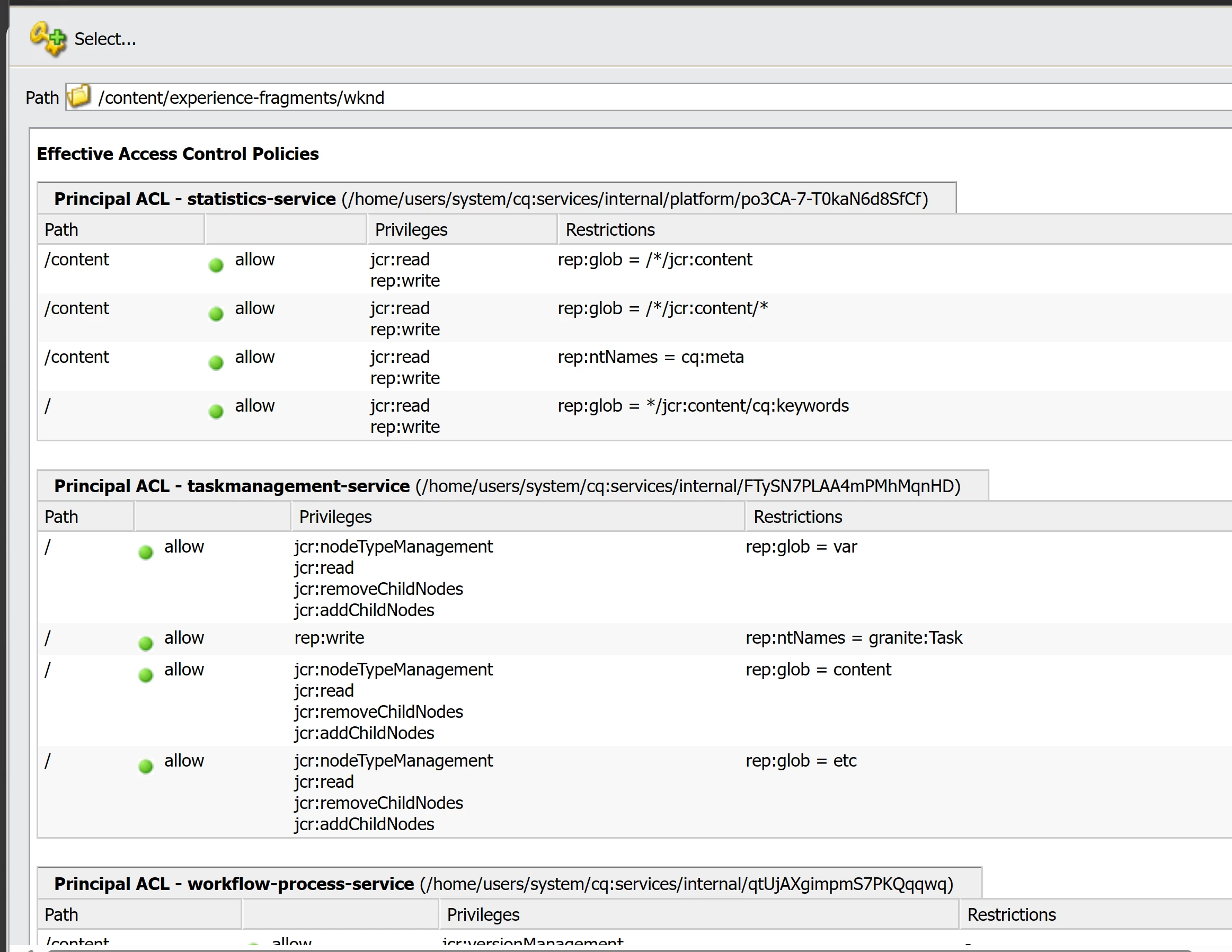 Expected result could be: all this ACL should reflect in Effective Access Control Policies of child but I am not getting any entry in Effective Control Policy.