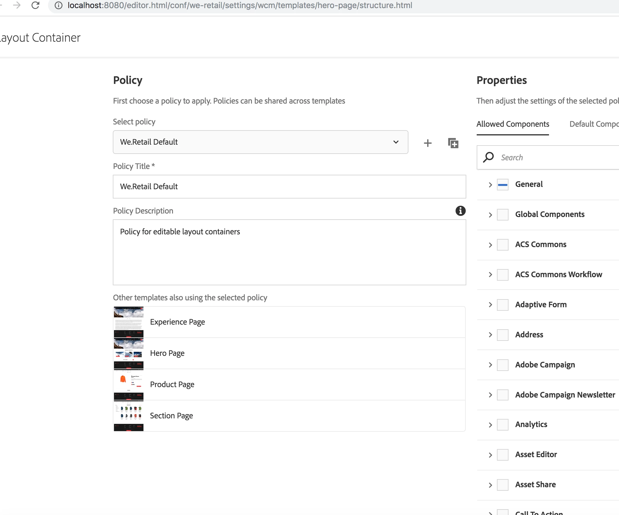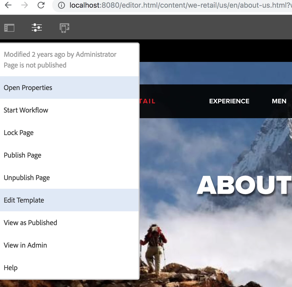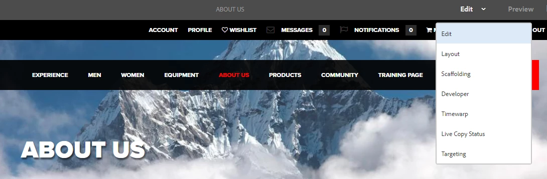 When editing the pages within We.Retail, I cannot see Design mode either. See below. My question is why and when Design mode appears in some pages, but not in other pages? same as Timewarp, Timewarp appears in some pages, but not in others.