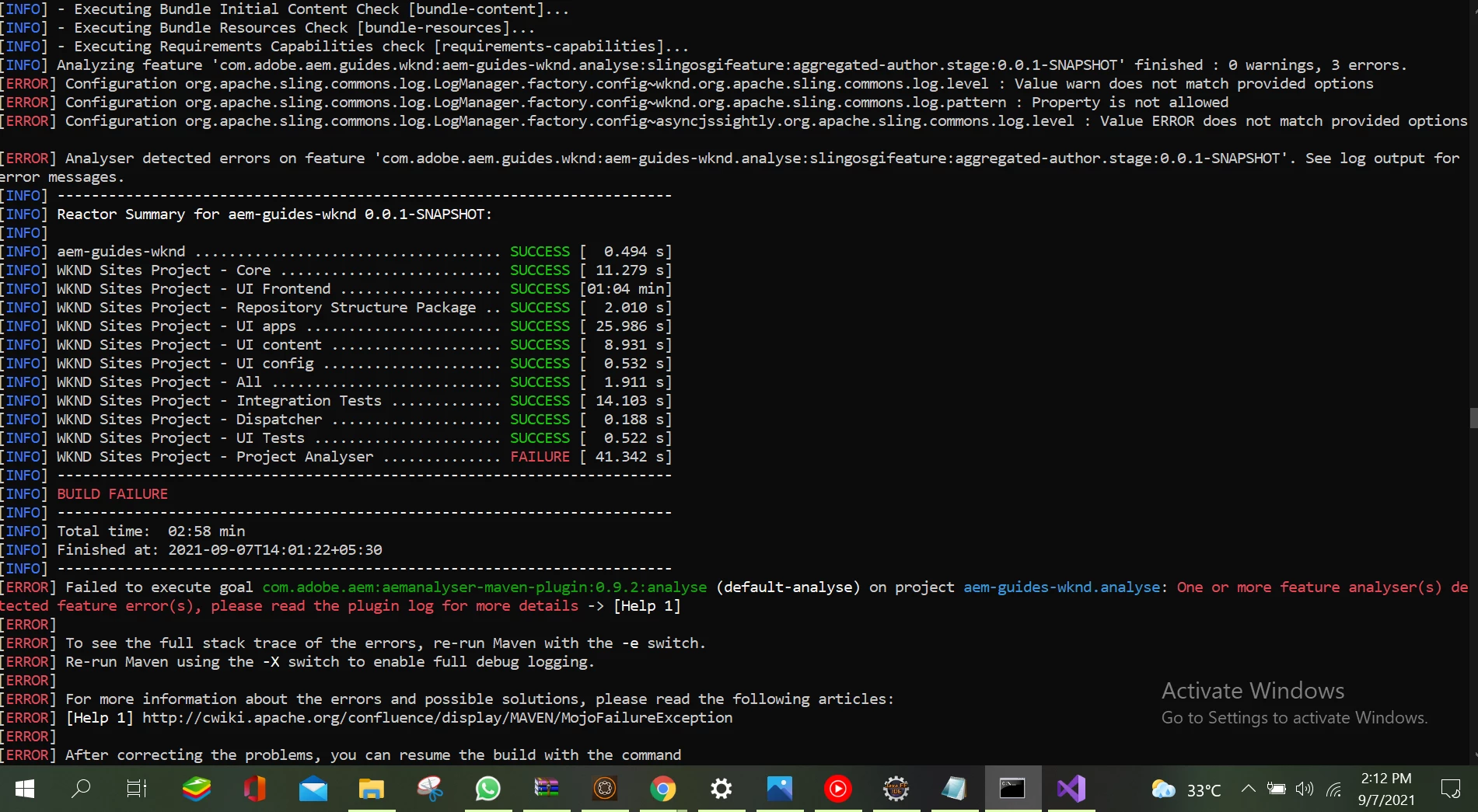 [INFO] WKND Sites Project - Project Analyser .............. FAILURE [ 20.309 s]