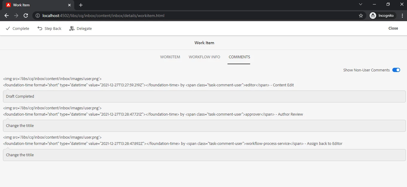 While adding comments in the workflow, the icon of user is showing as HTML code instead of actual PNG.