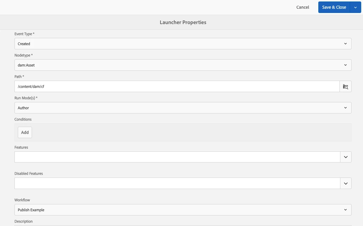Workflow Launcher for Content Fragment