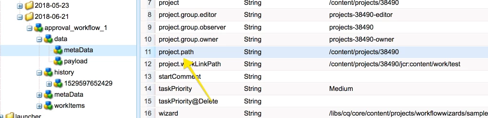Caused by: com.adobe.granite.workflow.WorkflowException: Metadata must include project path property in property named: project.path