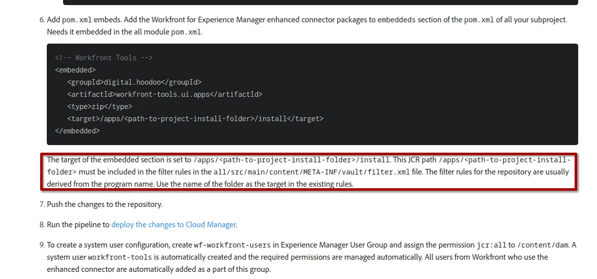 I am trying to deploy Workfront Enhanced Connector over our AEM CS using the documentation https://experienceleague.adobe.com/docs/experience-manager-cloud-service/content/assets/integrations/workfront-connector-install.html?lang=en