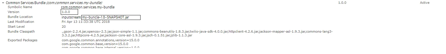 I am working on AEM 6.3 project, where my requirement is to change all the SNAPSHOT (1.0.0-SNAPSHOT) version to actual version in all the POM Files. After doing these change, I observed that "Bundle Location" is not getting changed in Felix Console.